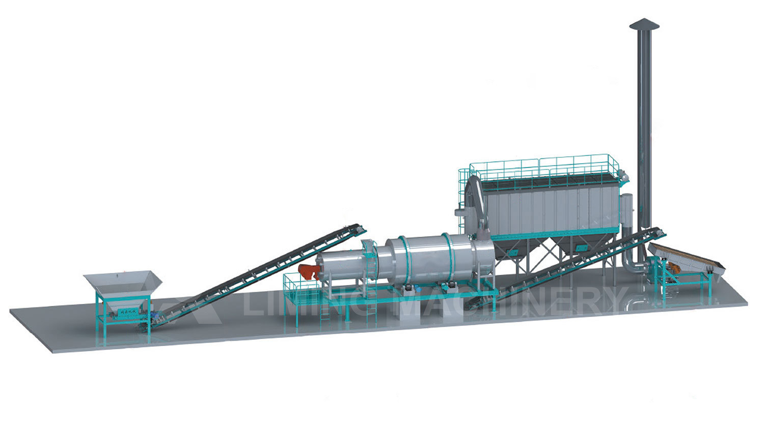 Принцип его работы заключается в использовании хорошо расположенных и поочередно наклоненных подъемников, равномерно распределенных внутри барабана, для многократного подъема и орошения влагосодержащего материала через вращающуюся камеру. Затем потоки горячего воздуха извлекают влагу из материала, преобразуя ее в водяной пар, который выбрасывается в атмосферу, тем самым обеспечивая сушку.